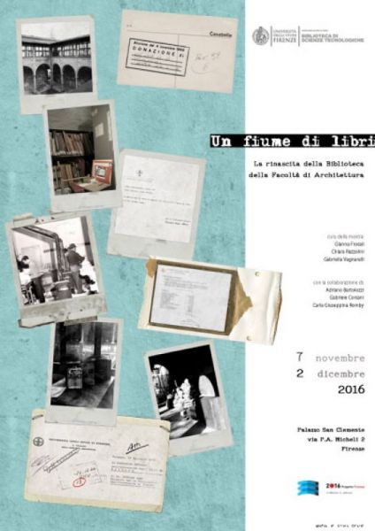 Per il cinquantennale della alluvione che colpì Firenze il 4 novembre del 1966, la Biblioteca di Scienze Tecnologiche - Architettura dell’Università degli Studi di Firenze, in collaborazione con Adriano Bartolozzi, Gabriele Corsani e Carla Giuseppina Romby, ha organizzato nei propri spazi la mostra “Un fiume di libri: la rinascita della Biblioteca della Facoltà di Architettura”.