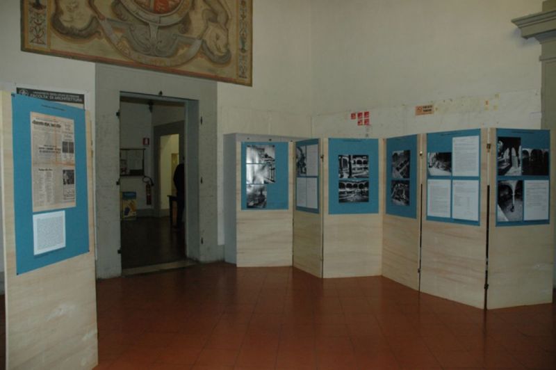I materiali in mostra provenivano dall’Archivio storico dell’Università di Firenze, dall’Archivio Giuseppe Gori della Biblioteca di Scienze Tecnologiche – Architettura, dall’Archivio fotografico dell’ex dipartimento di restauro della Facoltà di Architettura e dalla collezione della Biblioteca di Scienze Tecnologiche – Architettura.